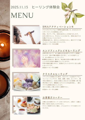 山口県周南市のヒーリングサロン~Natural Life~です。11月15日(土)下松市にて、ヒーリング体験会を開催します✨ *・⍣☪ :.。✩ *・⍣☪ :.。✩ *・⍣☪ :.。✩ *・⍣☪ :.。 *・⍣☪ :.。ヒーリング体験会 in 下松市「〜RESET〜」🍀開催日時🍀11月15日(土)10時半〜16時 🍀開催場所🍀下松市地域交流センター 「ふれあいの館」2F和室🍀お問い合わせ、ご予約🍀ヒーリング体験会事務局 natural.life.7788@gmail.com https://lin.ee/UmYNoS1*・⍣☪ :.。✩ *・⍣☪ :.。✩ *・⍣☪ :.。✩ *・⍣☪ :.。 *・⍣☪ :.。何だか最近停滞感を感じている活力、やる気が起きない日々に喜びやワクワク感が感じられない常に何か心配事や悩みを抱えているこのような場合、不安、恐怖、欠乏感に振り回された生き方になっているかもしれません。私たちは本来無限の可能性に溢れた存在です。自分次第で、いつからだって、どんな状態からだって望む人生(喜びいっぱいの人生)を創っていくことが可能なのです☺️もっと自由に生きたい自分の好きなことを見つけて、ワクワクしたい‼️自分らしく生きたいこんな想いが出てきたら、今までの古い生き方をRESETする時がきています。今回のヒーリング体験会では、あなたの「変わりたい」を後押しするメニューが盛りだくさん❤️入退場自由、入場無料です🍀ぜひ、お気軽に遊びに来てくださいね😊まだまだお申し込み受付中です😊